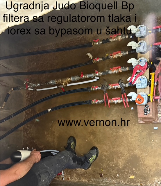 Primjer ugradnje JUDO BIOQUELL BP filtera za vodu sa regulatorom tlaka vode i iorex, bypass u šahtu zgrade